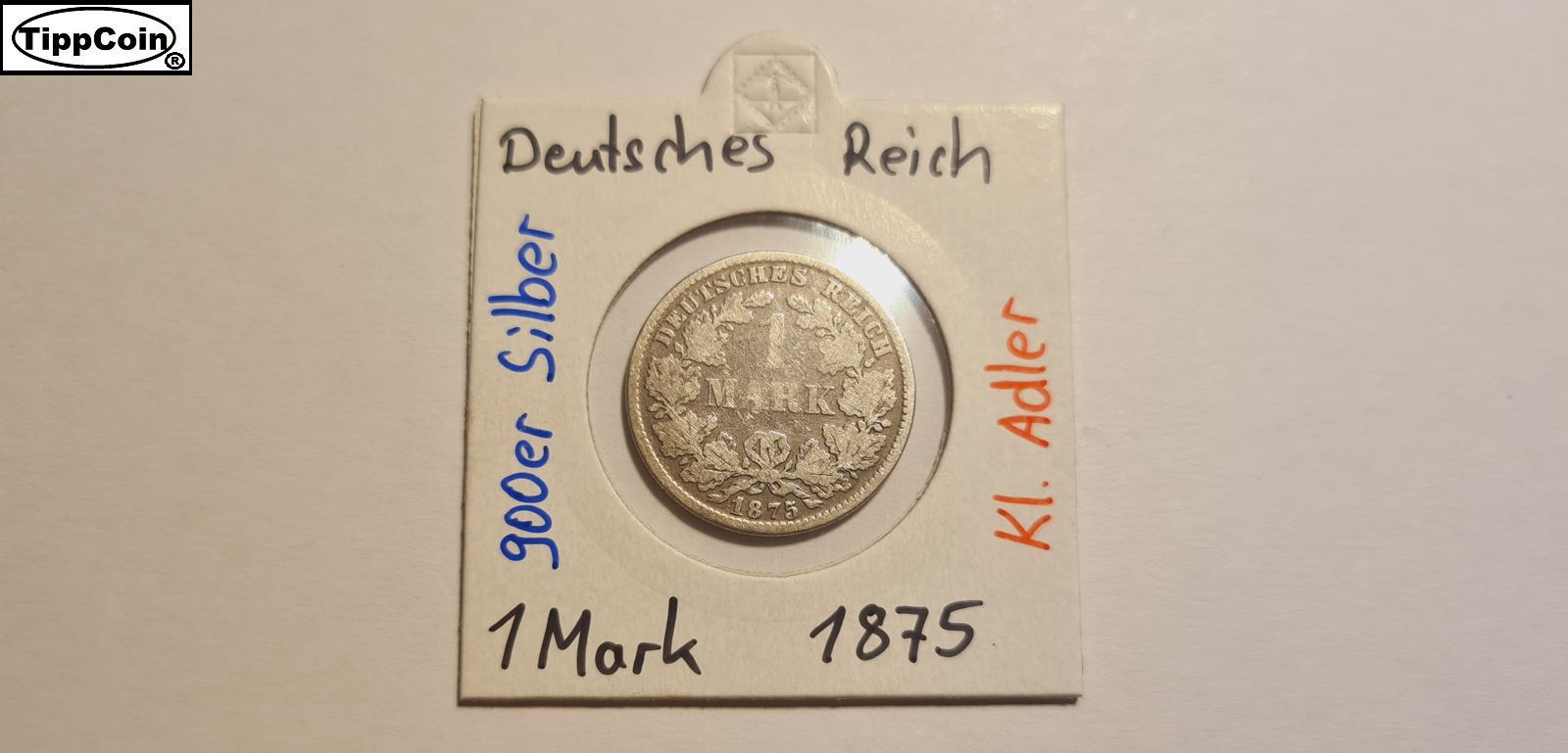 1 Mark 1875 Silber Deutsches Reich / 1 Mark 1875 Silver Germany Empire