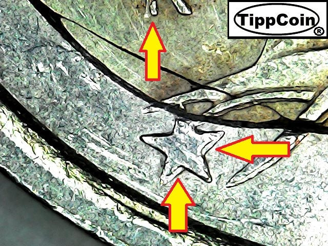 Prägeschwäche am Rand: Teile des Rands sind unvollständig geprägt, wodurch die außergewöhnliche Herstellungsabweichung betont wird.