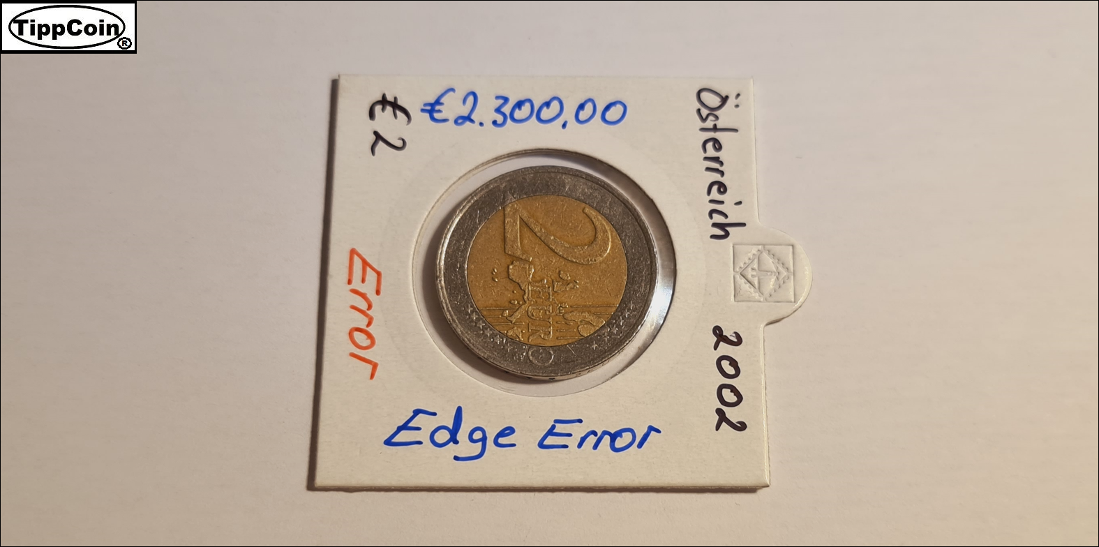 Österreich 2 Euro 2002 Fehlprägung / schwacher riffelrand bis hin zu glatter Rand