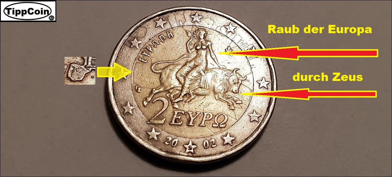 Einzelstück Fehlprägung 2 Euro Griechenland 2002 S
