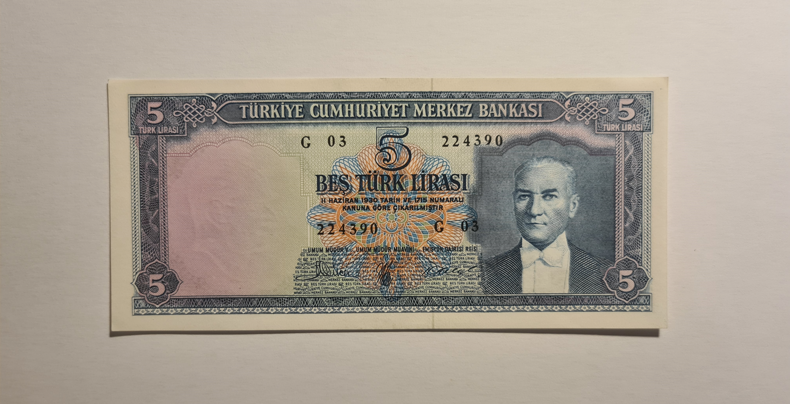 5 Lira 1961 Türkei in Unzirkulierter Kondition.